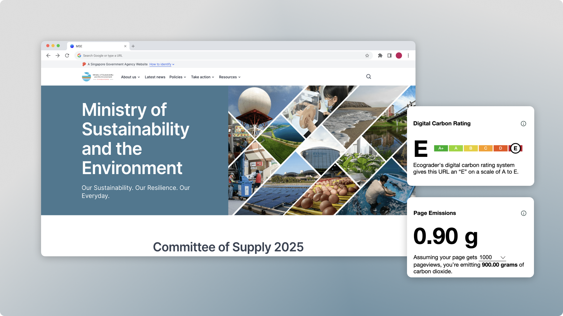 It’s often easy to overlook your website and digital activities as a contributor to your organisation’s carbon footprint. Even the Singapore Ministry of Sustainability has room for improvement with their website, with a rating of E and an emission score of 0.9 g CO₂ per pageload. Ecograder calls out specific strategies such as green hosting, reducing server requests and properly sizing images to help the Ministry of Sustainability and Environment achieve a better overall score. When we grow more conscious of how our digital products perform, we take another step towards driving our collective, sustainable future.