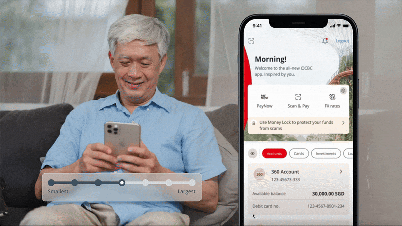 During its Digital Silvers workshops, OCBC identified that many senior users faced challenges with the app’s visibility and usability. Participants frequently squinted at their screens and expressed concern about tapping the wrong buttons. Adjusting font sizes through their phone settings often had little effect, or in some cases, disrupted the app’s layout, according to OCBC head of global consumer financial services.